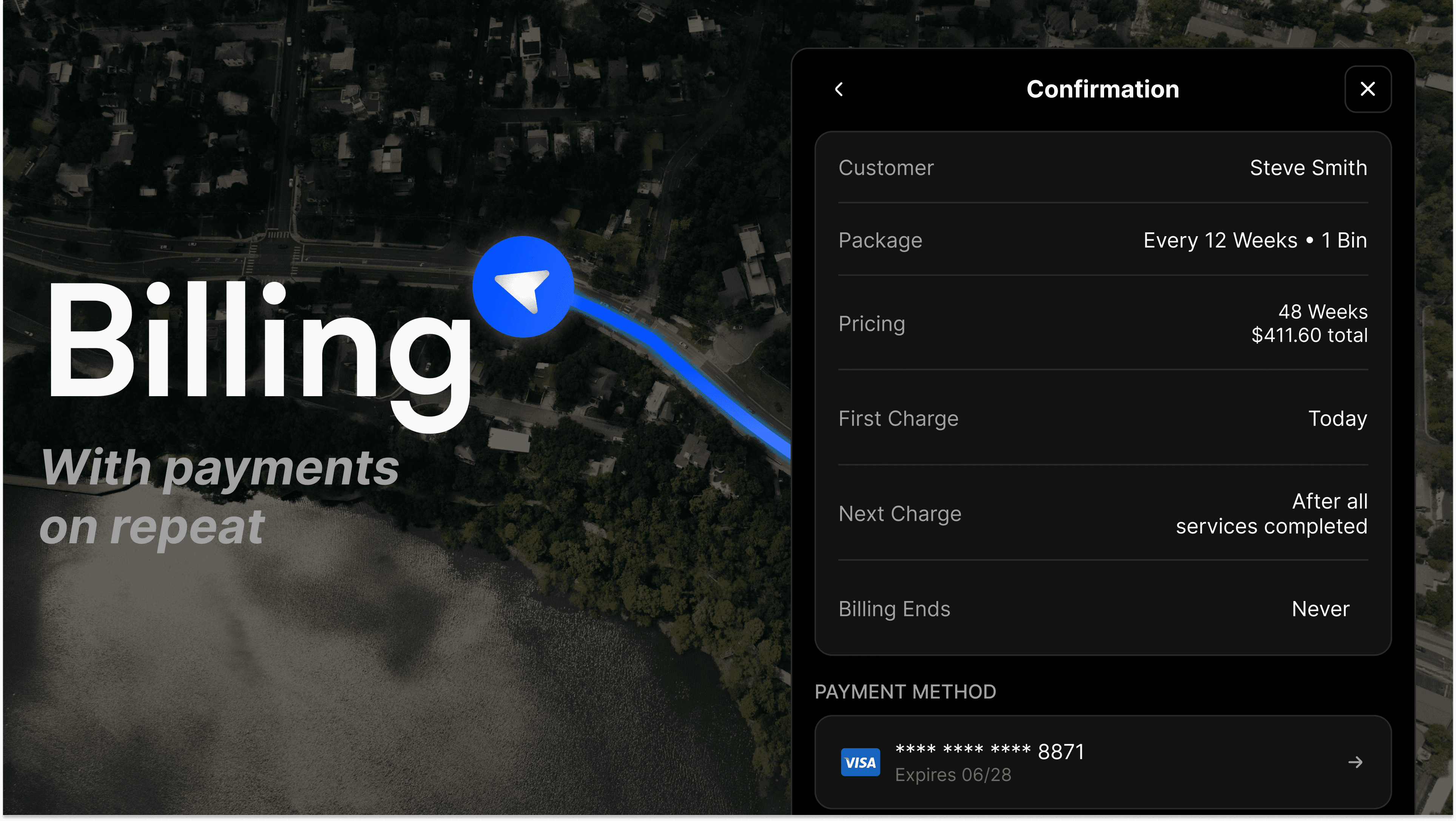 Run our app from your phone or your computer. Routes, team, jobs, and payments all connected.