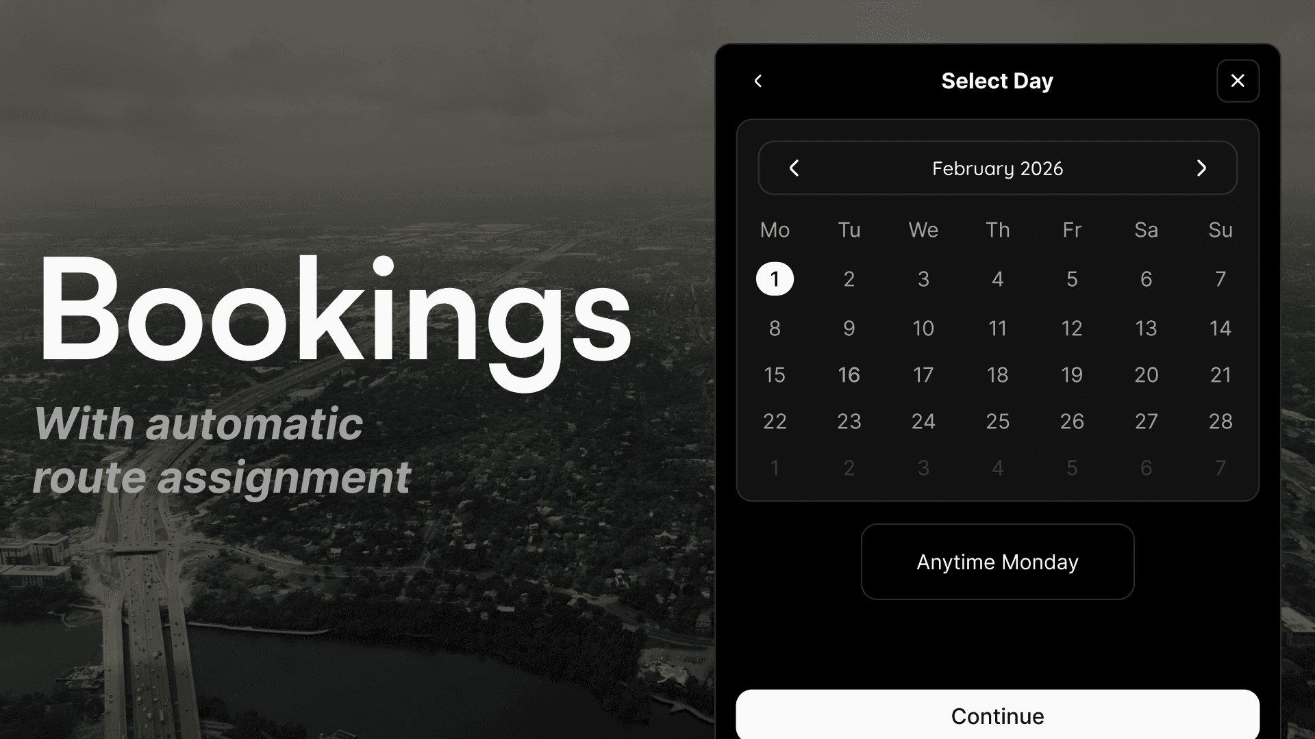 We fill your routes: Bookings land in the right day, based on your setup.